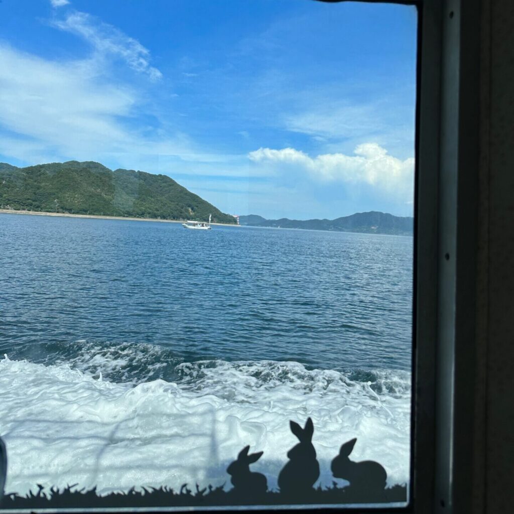 1日目は、電車と船を使い大久野島へ移動、のんびりと島の風景と食事、うさぎ達に癒されました