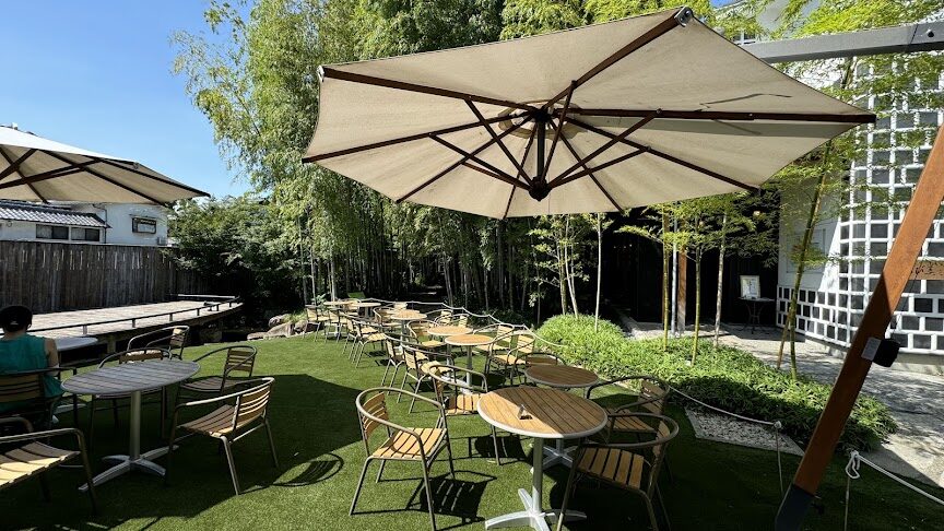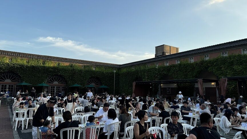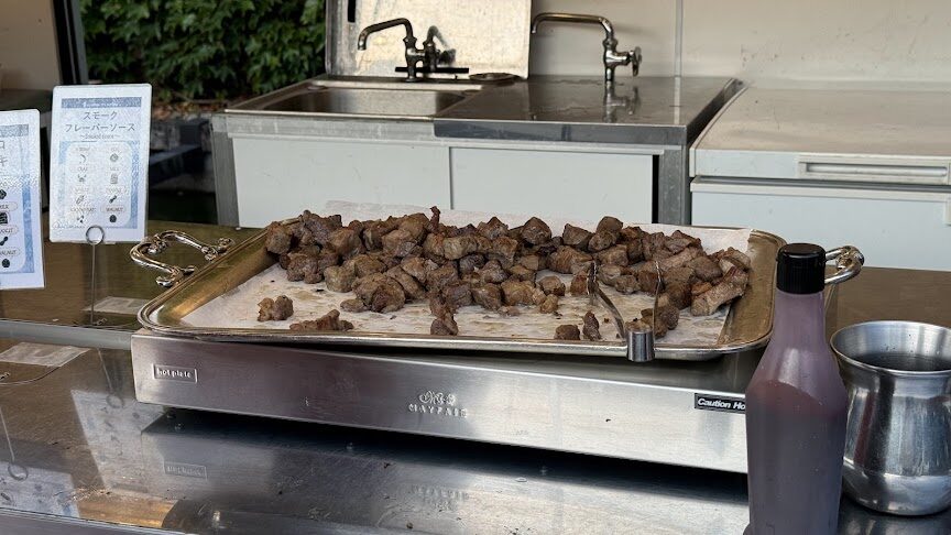 敷地内で開催されてたビアガーデンでディナー🍖🍻