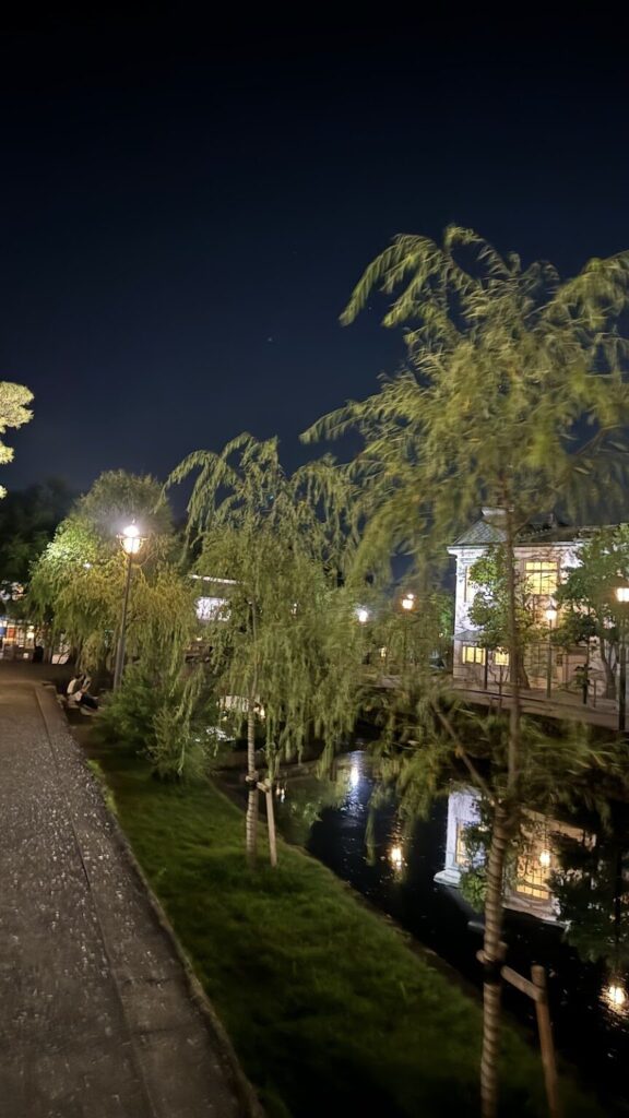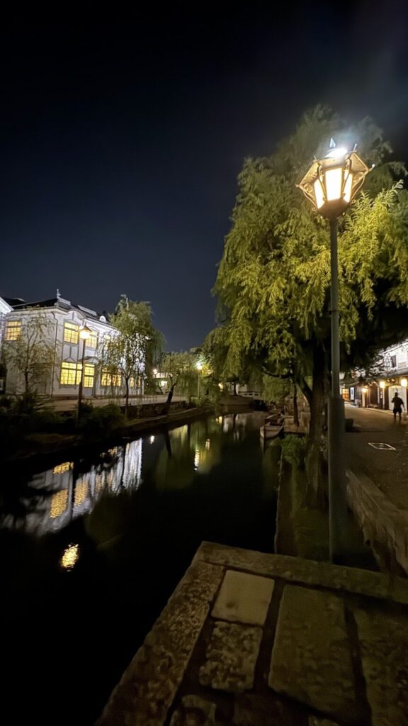 夜になると美観地区がライトアップ💡