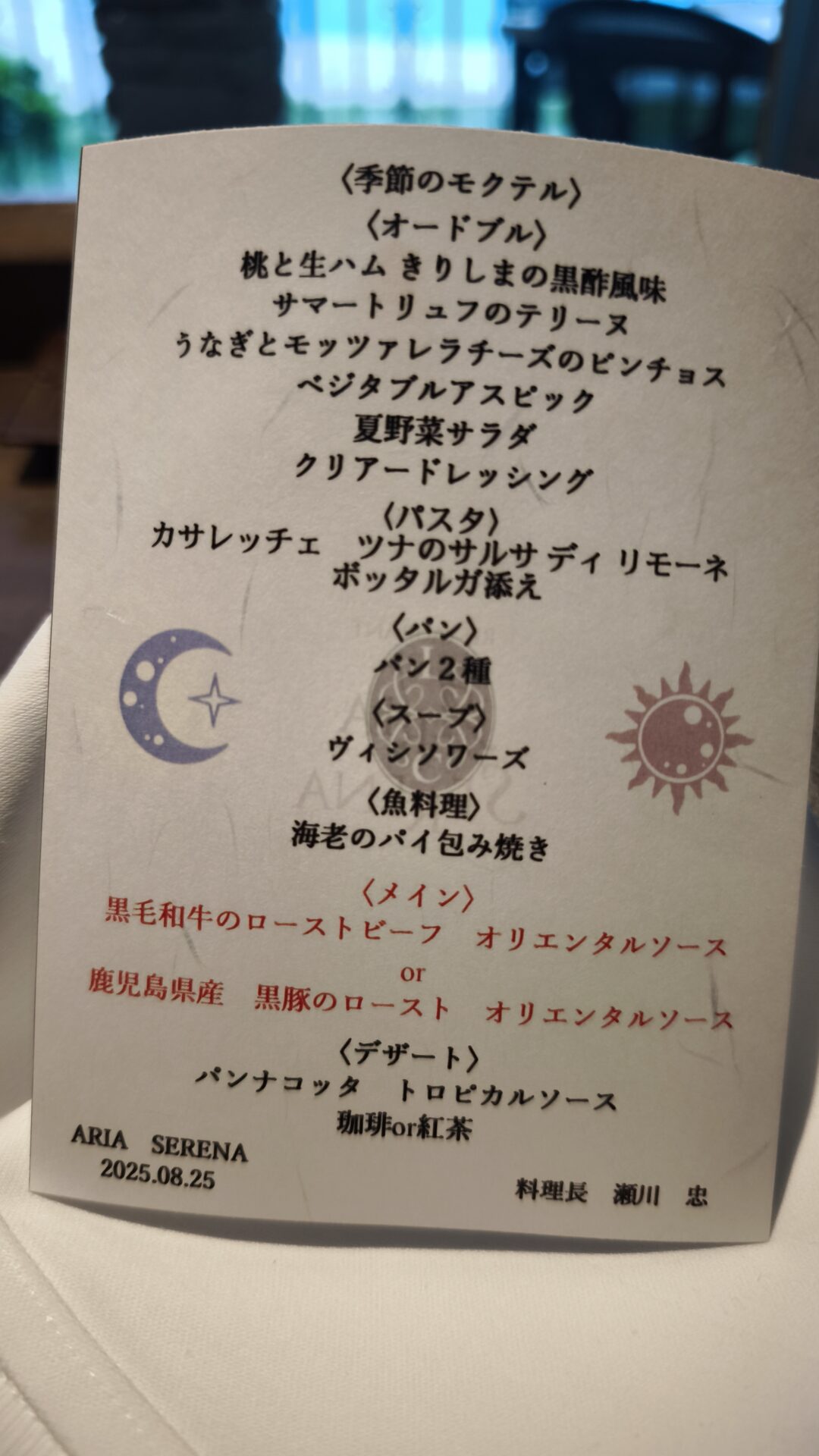 夜はホテルのレストランでイタリアンコースディナー。